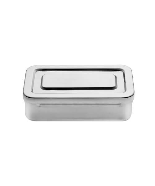 Pratica vaschetta in acciaio inox con coperchio, per la disinfezione di strumenti in acciaio inox